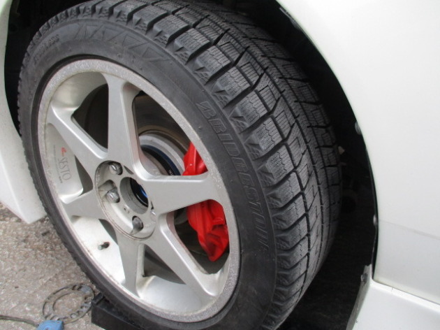 17インチの中古ホイールとセットでのお買い上げ。フロントはセルシオの大きなキャリパーに変更になっていたのでワイドトレッドスペーサーを取り付けての装着になりました。