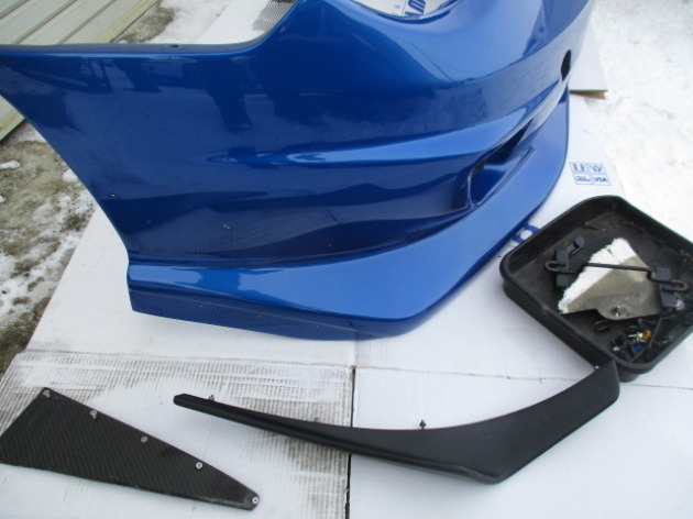GDBインプレッサの社外FRPバンパー割れ修理完了!カナード取り付け! 2017年1月16日 GDBインプレッサの社外FRPバンパー割れ修理完了しました。下部(リップ)部分、数か所割れの修理です。表面はパテ処理再塗装で新品状態。今回は、カナードも取り付けました。バンパーを車体に取り付けて作業完了ですv