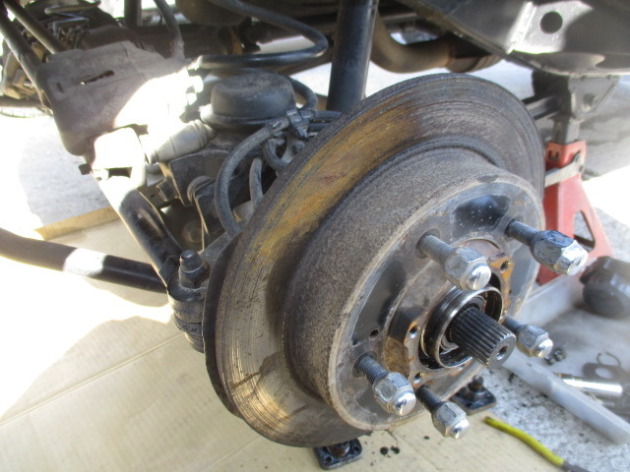 ハブを元に戻し、キャリパーを取り付け左側の作業は完了。