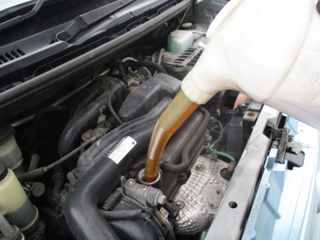 ダイハツ MAXのスタッドレスタイヤ交換、エンジンオイル交換しました。 タイヤ交換は難なく完了、引き続きエンジンオイル交換です。 使用するオイルはSUNOCO/DynaSuper 5W30です。 エス