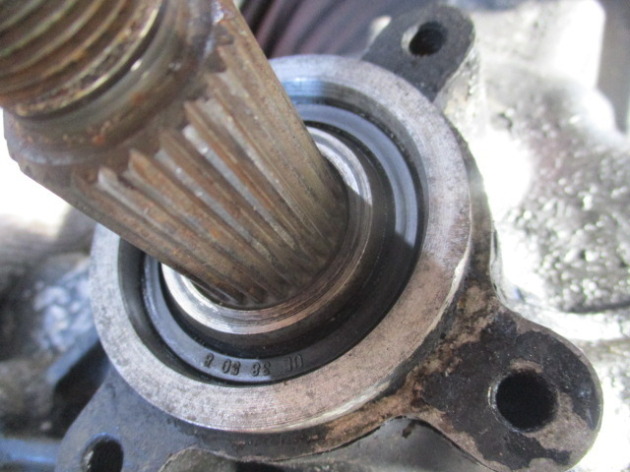 ほかの部分に異常が無かったので、トランスファーのリアシール交換をします。