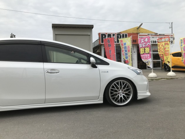 トヨタ40プリウスαが車高調整のご相談でご来店!