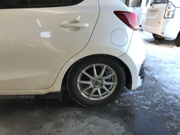 マツダデミオ 車高調整(車高上げ)完了しました。 2020年12月21日 常連様のK様より、マツダデミオの車高調整(車高上げ)のご依頼頂きました!(^^)!因みに夏仕様は、こんな感じです(; ・`д・´)冬仕様にします。前後バンパー、タイヤは交換済みです。冬は車から落ちる氷の塊が落ちているので危険です。上げる前の状態です。車高を上げますが、K様はサゲリシャスです(-_-;)作業集中してフロントの写真撮り忘れました。リアも上げて、作業完了です。今回もラルフ函館ご利用ありがとうございましたm(_ _)m
