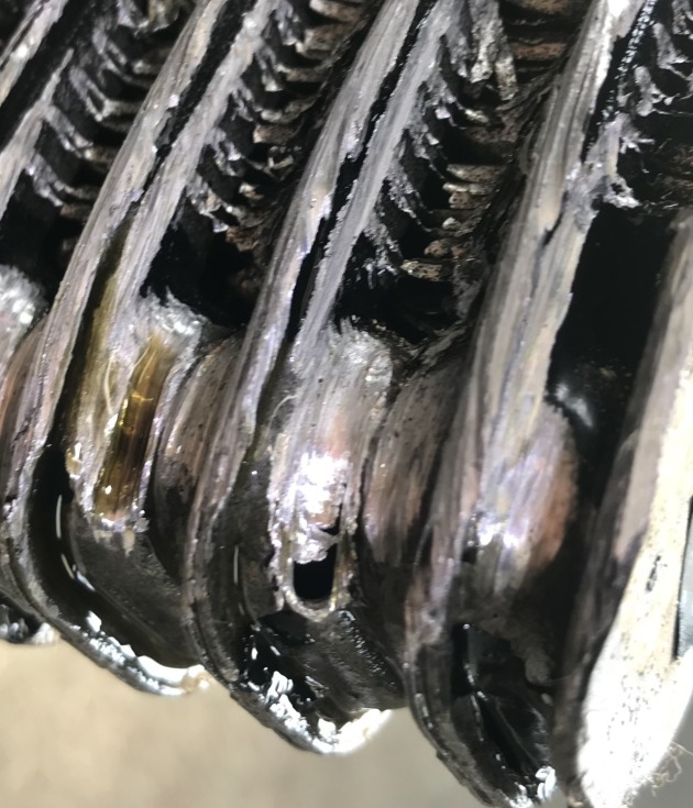飛び散ったオイルがボディにまでかかっています( ;∀;)