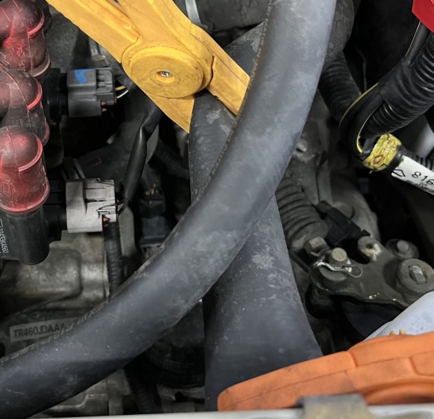 水温センサーアタッチメントを取り付ける為、ホースをカットします。