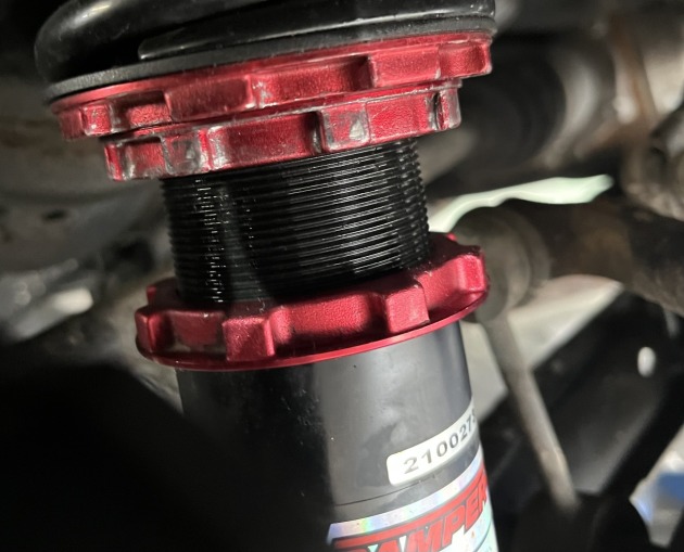 さすがにこの雪では今の車高だと厳しい状況なので冬仕様へ車高調整です。