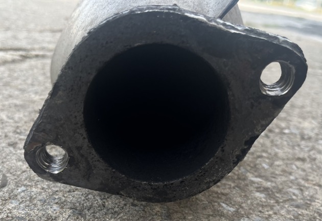 取り外した純正触媒は今後また再使用できるように、ボルト穴を空け直しておきます。