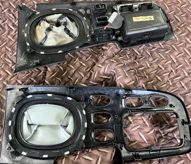 取り外したシフトパネルから新品シフトパネルにスイッチ等々を移植して、取り付けます。