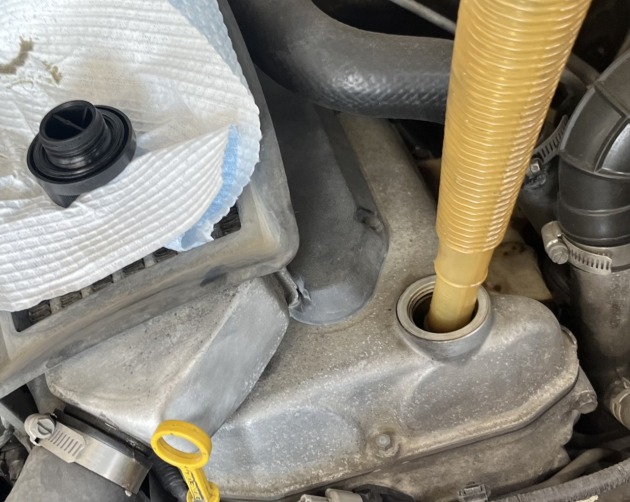 エンジンオイルを規定量入れ、レベルゲージを確認してオイル交換完了です。