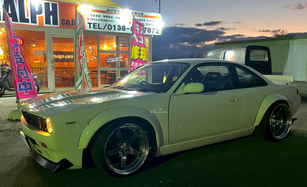 ロケットバニーボディキットが組まれたS14シルビアの車両点検とエンドックス下回り防錆施工