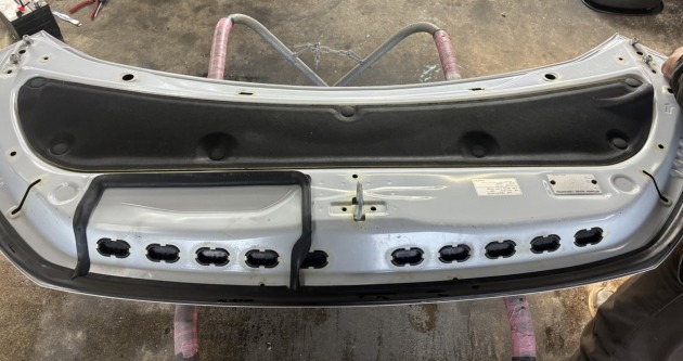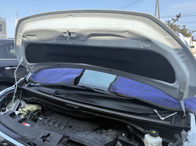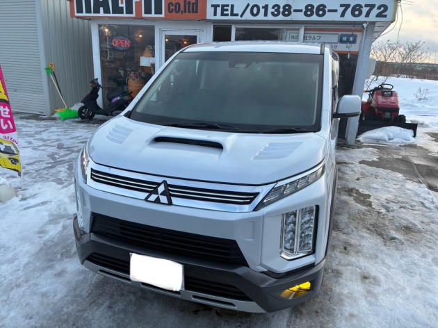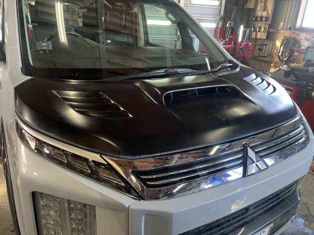 持ち込み社外FRPボンネットを塗装して三菱デリカD5に取り付け完了! 2026年3月4日 三菱デリカD5に持ち込み社外品のFRPボンネットを塗装/取付けご依頼で入庫しました。持ち込み品の社外FRPボンネットを仮付けして、加工や調整等が必要かどうか?フィッティング確認します。フィッティング確認後、塗装はラルフ札幌本社の方で丁寧に塗装しました。純正ボンネットを取外します。取外した純正ボンネットから交換する社外FRPボンネットに付属品を移設していきます。付属品を移植した社外FRPボンネットを取付けます。ボンネット交換作業完了となります。この度はご依頼ありがとうございました。