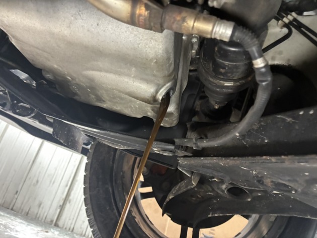 エンジンオイルを抜いて、エレメントを外します。