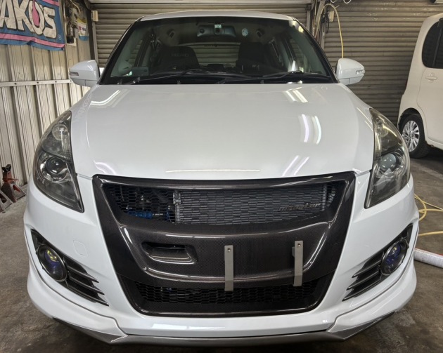 スイフトのユーザー車検代行(持ち込み純正マフラーに交換/オイル交換)
