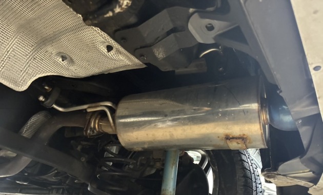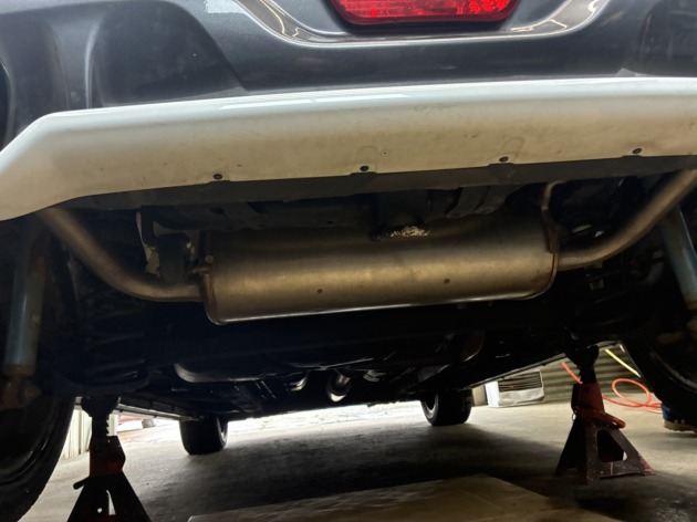 また、ご依頼者より『マフラーが社外品なので、純正マフラーに交換して欲しい』と事前に相談を受け、純正マフラーを持ち込んで頂いたので、マフラーの交換も行います。