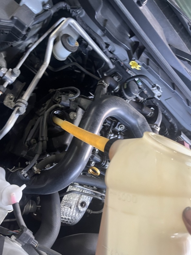 新品のエレメントを付け、新しいエンジンオイルを注入します。