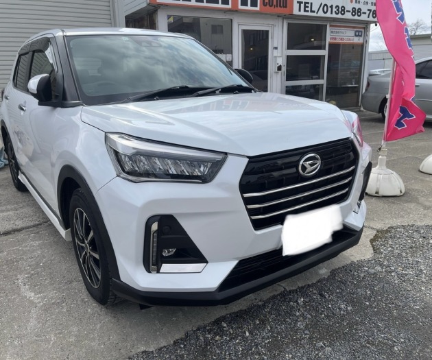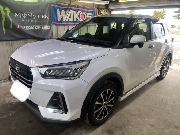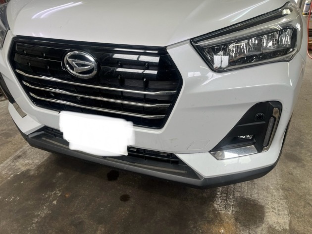 割れてしまったフロントバンパー交換修理と定期メンテナンスのご依頼で、ダイハツロッキーが入庫しました。