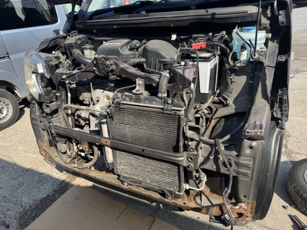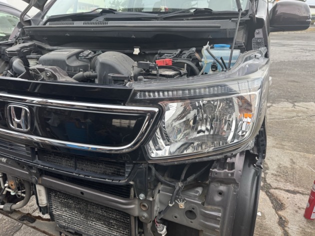 自損事故で中破してしまったホンダNワゴンの左ライトとグリルをリサイクル品に交換と再利用フロントバンパー補修修理!