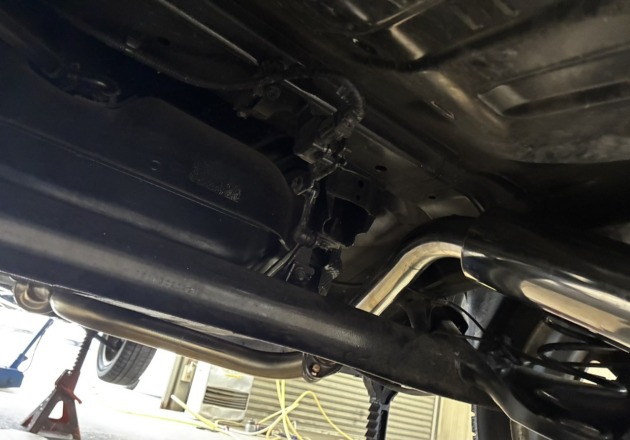 加工内容としましては、持込品マフラーの中間ピースにフロント側との接続部が無いので、純正マフラーをカットして、持込品に取付ける流れになります。