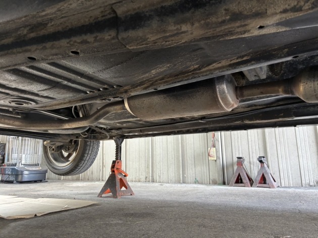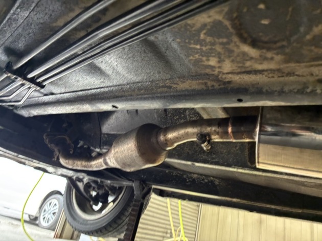 純正マフラー、一本物で取り外すのに苦戦しましたがなんとか取り外せました。