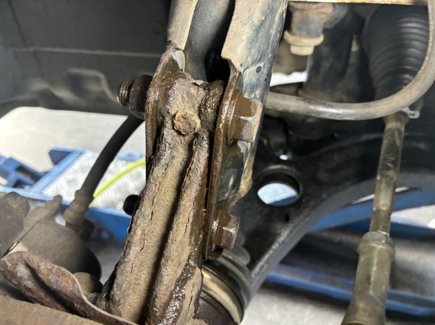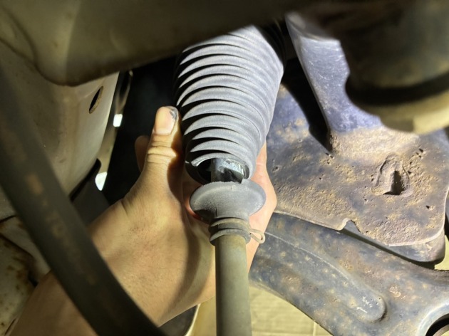 まずはステアリングラックブーツとサスショックの交換作業を行います。