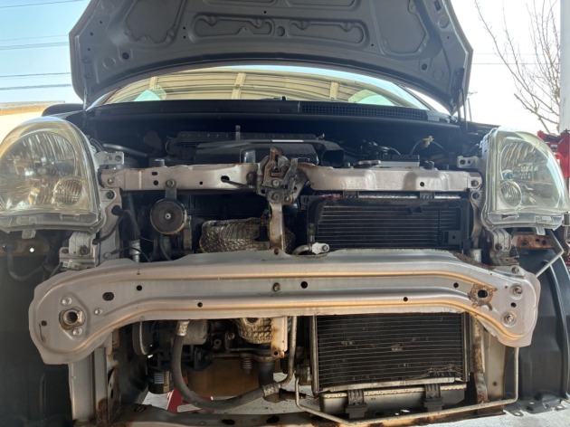 バンパー等、ラジエーターを取り外すにあたってのパーツも取り外し。