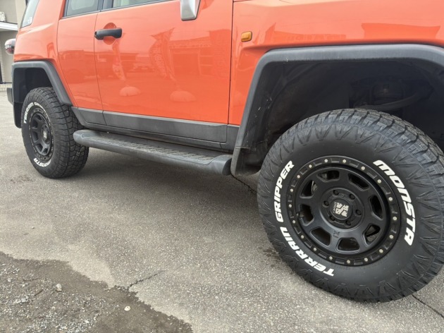 ネットで購入したタイヤを当店着で組み替え後、入庫したFJクルーザーのタイヤ交換と定期メンテナンス完了!