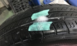 最近スズキワゴンRのブレーキ辺りから異音が聞こえるので点検して欲しいとご依頼いただきました。 異音点検のためジャッキアップすると後ろが傾き始めて、ブレーキ辺りの異音とは関係ありませんが、タイヤを見ると