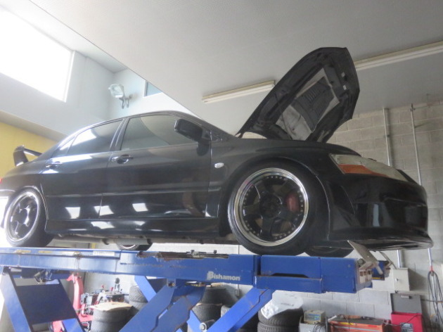 ミツビシランサーエボリューションⅧ CT9AのT様オイル交換で入庫です。 HKS SUPER TURBO RACING 5W-40とHKS OIL FILTERを交換します。 T様ありがとうご