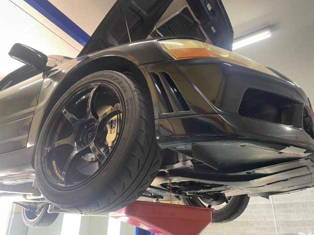 ミツビシランサーエボリューションⅧ CT9AのT様オイル交換で入庫です。 HKS SUPER TURBO RACING 5W-40とHKS OIL FILTERを交換します。 T様ありがとうご