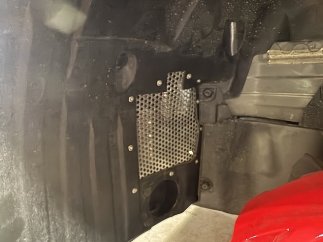 インナーフェンダーには、アウトレットダクトの加工もしています。