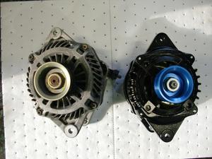 BP5 レガシィ アドバンス ブラックオルタネーター! 2012年1月13日 N様のBP5 レガシィにアドバンスのブラックオルタネーターを取り付け致しました。数ヶ月に1回くらいのペースで紹介している低抵抗で容量もアップされる商品です。取り付けは完全ボルトオンなので楽チンです。特にEJはやりやすいです。サイズはほとんど変わりません。パワー、燃費、電装品など様々な場面に良い影響を与えてくれるパーツです。N様、いつも有難うございます。