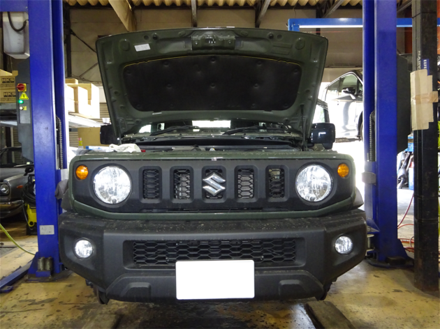 スズキ ジムニーシエラ JB74W K15B 朝一 入庫しました (^_^) エンジン ロイヤルパープル HPS 5W30 HKS オイルエレメント 交換 SOD-1 400㏄ 添加 (^-^)