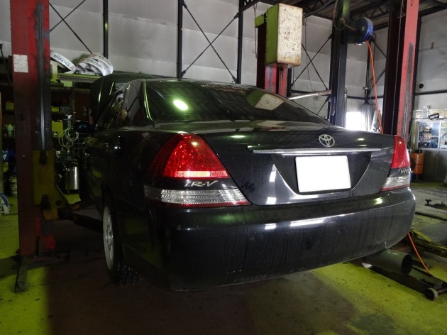 トヨタ マークⅡ IR-V JZX100 1JZ 柿本改マフラー取付と4輪アライメント調整 (^。^) マークⅡ IR-V JZX110 マフラー交換 入庫です! 柿本改 フルメガ REVマフラー す