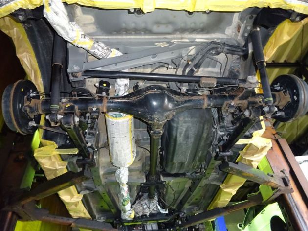 トヨタ 86 ZN6 FA20 ノックスドール防錆前の 下回り洗浄 乾燥後 フルマスキングを施します (^-^) フル防錆ですので まずノックスドール UM1600 塗装 900# 750# 700