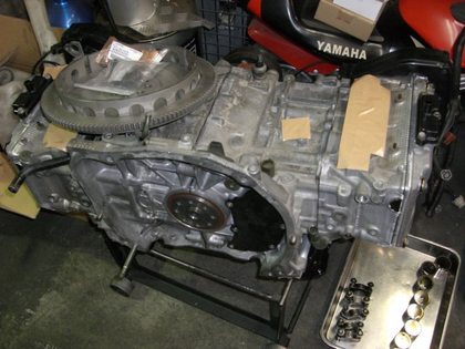 エンジンスタンドから降ろされ エンジン室の片隅に置かれたEJ20やっと乗っかるのか?