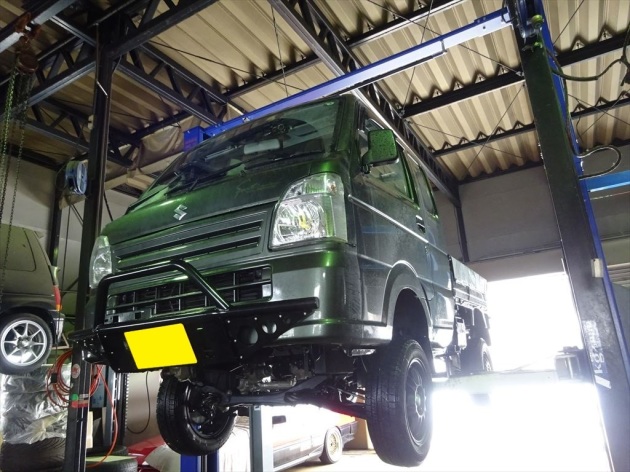 スズキ キャリイL DA16T R06A オイル交換 入庫しました (^_^) HKS プレミアム 5W30 オイルエレメント 交換 SOD-1 300㏄ 添加です! フロント から異音 ハヴベアリ