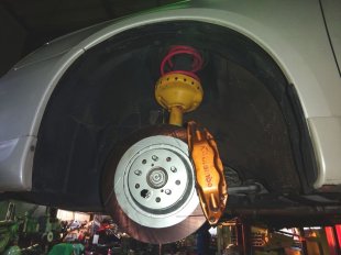 Greddy ブレーキフルード DOT4S エアー抜き交換 ブレンボキャリパー取付完了!