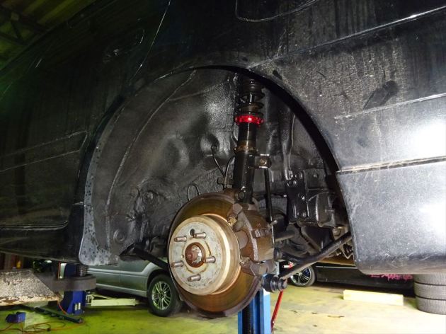 マツダ RX-8 SE3P 13B 6MT 下回り 防錆施工 入庫しました (^.^) 下回り 洗浄後 乾燥させながら... フルマスキングを施します (^^ゞ 錆転換コーティングスプレー レノバス