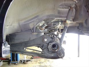 スズキ ワゴンR スティングレー MH23S K6A エンジン載せ替えです (^.^) ワゴンR スティングレー MH23S K6A 入庫から一月経ち リフトに上げリました! 左側 板金塗装 以外に時