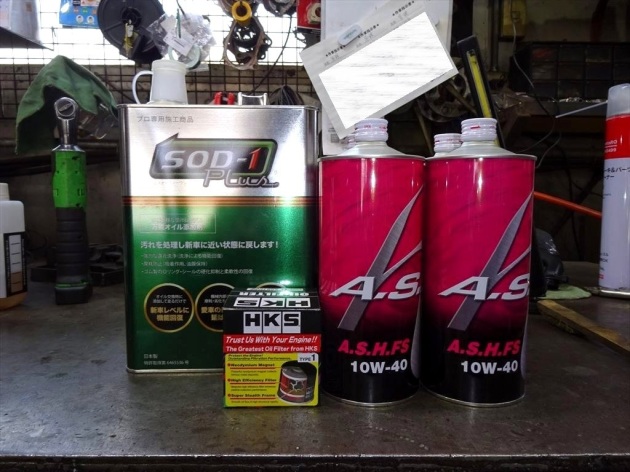 エンジンオイル A.S.H FS 10W40 HKS オイルエレメント 交換