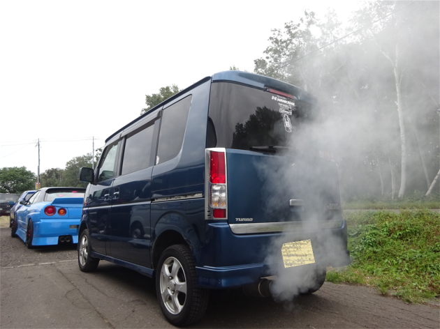 エンジン 始動...マフラーに溜まったオイルで 白煙が凄い (^◇^;)