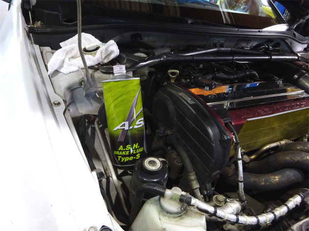 三菱 ランサーエボリューションⅨ CT9A 4G63 入庫しました (^。^) A.S.H ブレーキフルード TYPE-S エアー抜き 交換しました (^^ゞ A.S.H TYPE-S 高価ですが