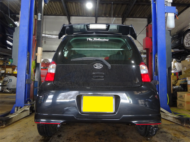 年末に車検予約していた ダイハツ エッセ L235S KF 入庫しました (^▽^) テールランプ(右)中古 交換 ヘッドライト交換のため バンパー脱着 中古ヘッドライト スフィア H4 α 交換