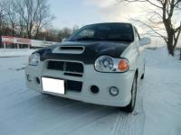 スズキ アルトワークス HA22Sのお客様が車検で来店しました(^o^) 2年前も当社で車検を取りました。今回はRのブレーキを交換? 何気に自作のステッカーが(^_^) これ以上大きくなると イタ