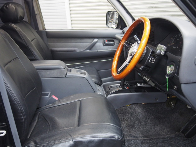 ランクル80ブラックボディ!後期フェイスメッキグリルでひきしまったボディです! 2017年7月29日 平成4年車ランクル80 VX-LTDディーゼルターボ18.9万km車検新規ATクルーズコントロール後期フェイスサンルーフツインバッテリーHDDナビウッドハンドルマーテルギアビーストホイールマッドタイヤLEDテールSOLDOUT!!