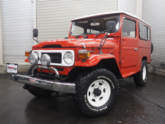 ランクル44 パワステクーラー付!BFGマッドタイヤで雰囲気の良い1台入荷!! 2019年9月29日 昭和56年ランクル44 ロング走行不明車検整備付4速シフトパワステクーラーグッドリッチATタイヤ31インチ40純正スチールホイールフェンダーミラーフォグランプ背面タイヤ4ナンバー※ボディ錆ありSOLDOUT