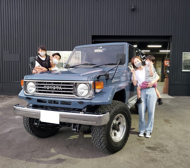 F様ランクル77 デフロック車両納車!! 2022年8月25日 弊社にて製作させて頂きました77カスタム車両を販売前に御成約頂き、納車させて頂きました!!!ファミリーカーから憧れのランクルにお乗り換え!整備はエンジンから足周り、内装のスイッチひとつまで細かくチェック。シートカバー、ウッドステアリング、フィルム施工も無事完了!ご希望に沿ってカッコ良く仕上がりました!!F様、この度はご用命ありがとうございます。これからも末永いお付き合いよろしくお願い致します!