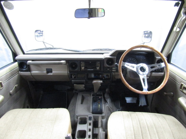ランクル77ディーゼルナローボディ!内装ベージュ本州仕入4ナンバー車両!24.7万キロ! 2024年12月12日 平成8年車ランクル77 LX走行距離 247,000キロ車検整備付4200ccディーゼルFAT前後リーフ 全塗装 新品ヨコハマATタイヤ新品輸出ホイール新品FRバンパー新品グリル新品フェンダーミラー新品ウッドハンドルマークルオリジナルシートカバー製作 本州仕入SOLDOUT!!