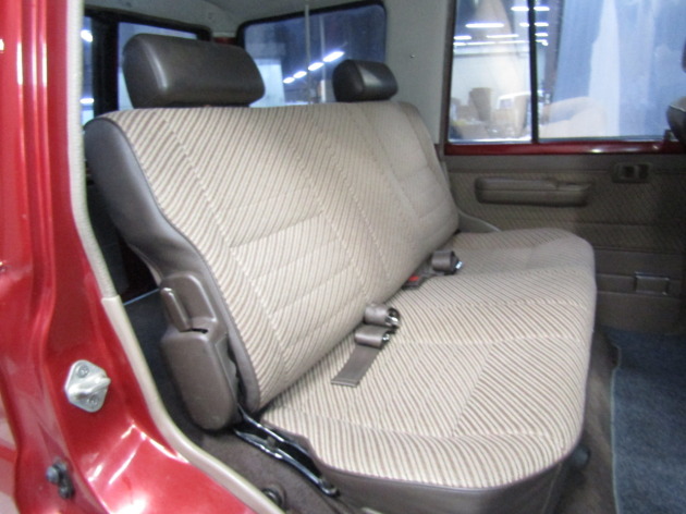 ランクル77純正ワイン5速マニュアル!希少内装ベージュ!綺麗な77入庫しました! 2025年4月29日 平成3年車ランクル77 LXグレード走行距離 196,000km車検整備付き3500ccディーゼル5速マニュアル4ナンバー純正ワインレッド純正TOYOTAグリル新品輸出ホイール新品グッドリッチAT内装ベージュ背面タイヤSOLDOUT!!