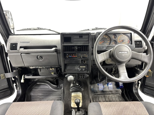平成5年車 スズキ ジムニー 4WD 走行距離 111,700キロ 車検整備付 660cc 5F リフトアップ 4WD ターボ 5速マニュアル パワステ クーラー 純正デカール 64スチ
